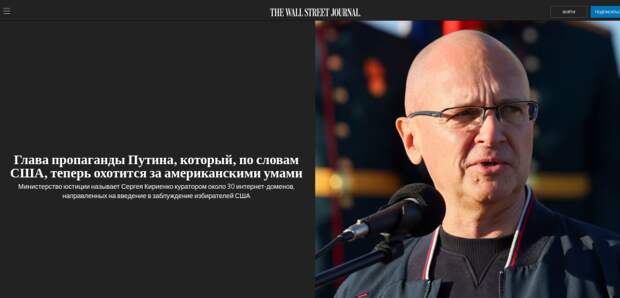 Министерство юстиции США назвало Сергея Кириенко "куратором около 30 интернет-доменов", которые якобы распространяли ложную информацию для американцев. Газета WSJ пошла ещё дальше и заявила, что Кириенко якобы "охотится за американскими умами".