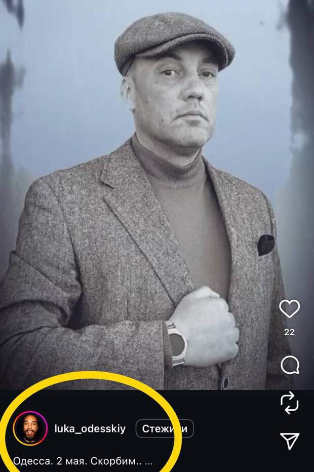 «Он высмеивает наши национальные потери общественных деятелей, убитых российскими агентами. В частности, нашего друга Демьяна Ганула, Андрея Парубия и Ирину Фарион. На фото в соцсети он стоит с рюкзаком доставщика [у ликвидатора Парубия был такой же], делая отсылку к последнему убийству, и спрашивает: «Кто следующий?»…