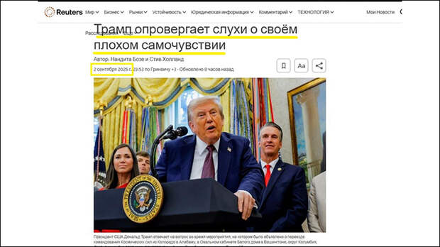 Когда 2 сентября Дональд Трамп впервые за неделю показался на публике в Белом доме, общение с журналистами началось с вопроса: "Мистер президент, как вы узнали на выходных, что вы мертвы?".
