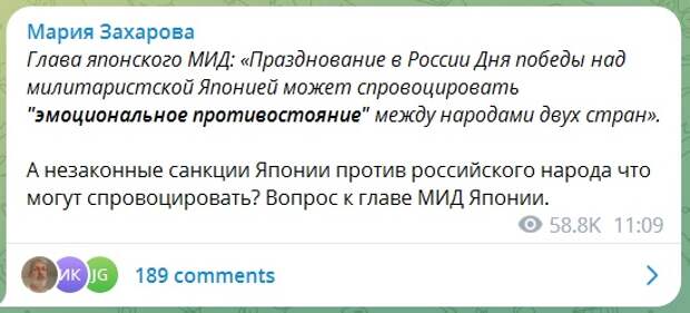 Тогда у Токио почему-то не было никаких возражений по этому поводу — они признали себя побежденными. А теперь вдруг мы слышим какие-то окрепшие голоса с твердыми нотками, которые пытаются от России чего-то требовать?