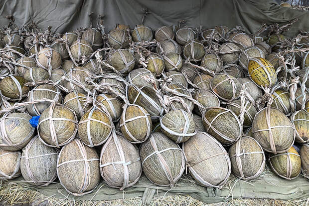 Поздние сорта дынь собирают в октябре, они хранятся до Нового года. Лежа они только набирают сок и аромат и считаются наиболее вкусными. В декабре ими завалены все дехканские рынки — это своего рода символ этого зимнего месяца.