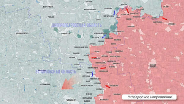 На Угледарском направлении российская армия также демонстрирует успехи. Войска продвинулись по рубежу Новониколаевка-Малиновка, ведут зачистку Полтавки и уже закрепились на восточной окраине Успеновки.