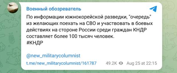 Южнокорейская разведка на днях поделилась весьма любопытными данными. Утверждается, что в КНДР сформировались настоящие очереди из тех, кто хочет отправиться на СВО.