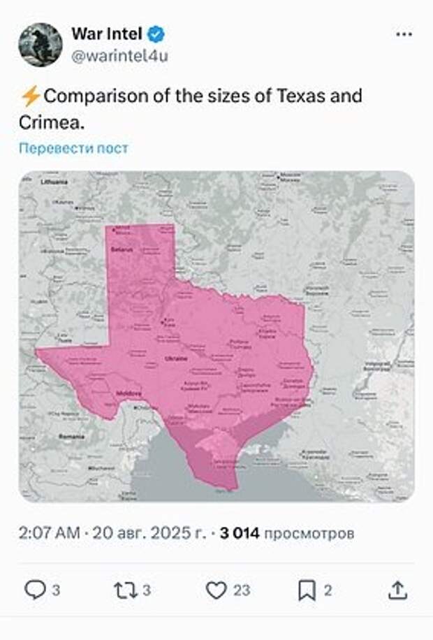 Тем не менее слова американского лидера не соответствуют действительности. Площадь Крыма составляет около 27 тысяч квадратных километров, в то время как у Техаса — более 695 тысяч квадратных километров.