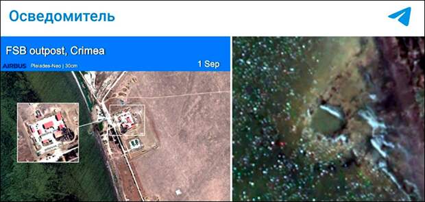 Тем временем в соцсетях гуляет информация и космоснимки о вероятном первом применении крылатой ракеты "Таурус". Компания Airbus опубликовала спутниковый снимок последствий прилётов украинских БПЛА-камикадзе, как утверждается, по пограничному пункту в Крыму в конце августа (возле Армянска).