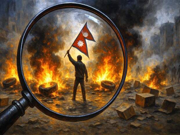 На первый взгляд событие уникальное: первая в мире революция зумеров, взбунтовавшихся после блокировки социальных сетей. Интернет-зависимость привела к трагическим последствиям: протестный митинг перерос в попытку штурма парламента, военные ответили боевым огнем, после чего в Катманду и окрестностях запылали дома элиты, зачастую с живыми людьми внутри. В итоге погибли несколько десятков человек (как минимум пять десятков), еще полторы тысячи пострадали.