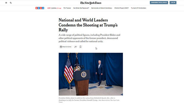 Меня проинформировали о стрельбе на митинге Дональда Трампа в Пенсильвании. Я рад слышать, что он в безопасности и у него всё хорошо. Я молюсь за него и его семью, а также за всех, кто был на митинге, пока мы ждём дальнейшей информации. Мы с Джилл благодарны Секретной службе за то, что она доставила его в безопасное место. В Америке нет места такому насилию. Мы должны объединиться как одна нация, чтобы осудить это.