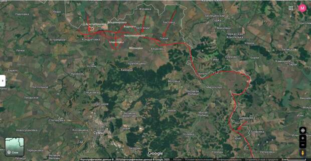«Таким образом до стратегически важного пгт Хотень нам осталось пройти около 4 км, а до областного центра Сум расстояние сократилось до менее 18 км. Тем временем бои в Юнаковке сместились в южную часть села и вероятней всего скоро будет объявлено и о его освобождении.