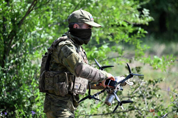 В ведомстве сказано, что беспилотники снаряжаются боеприпасом и движутся в сторону противника. На устройство могут устанавливаться различные виды снарядов — как гранаты, так и выстрелы от гранатометов. Конкретный выбор зависит от поставленной задачи.